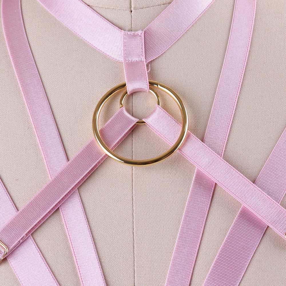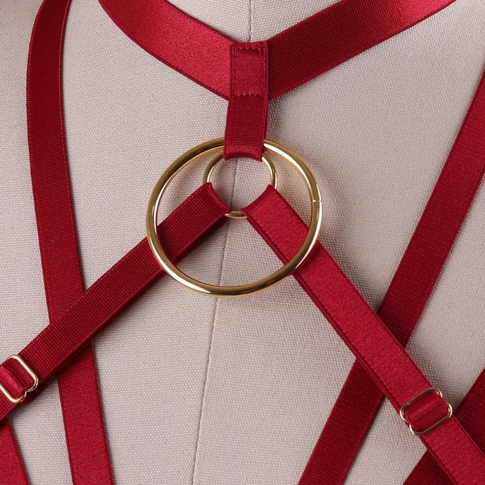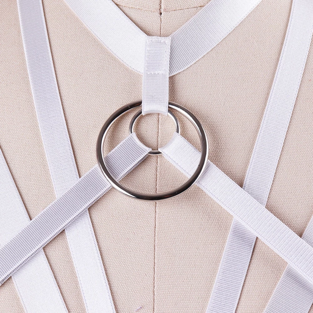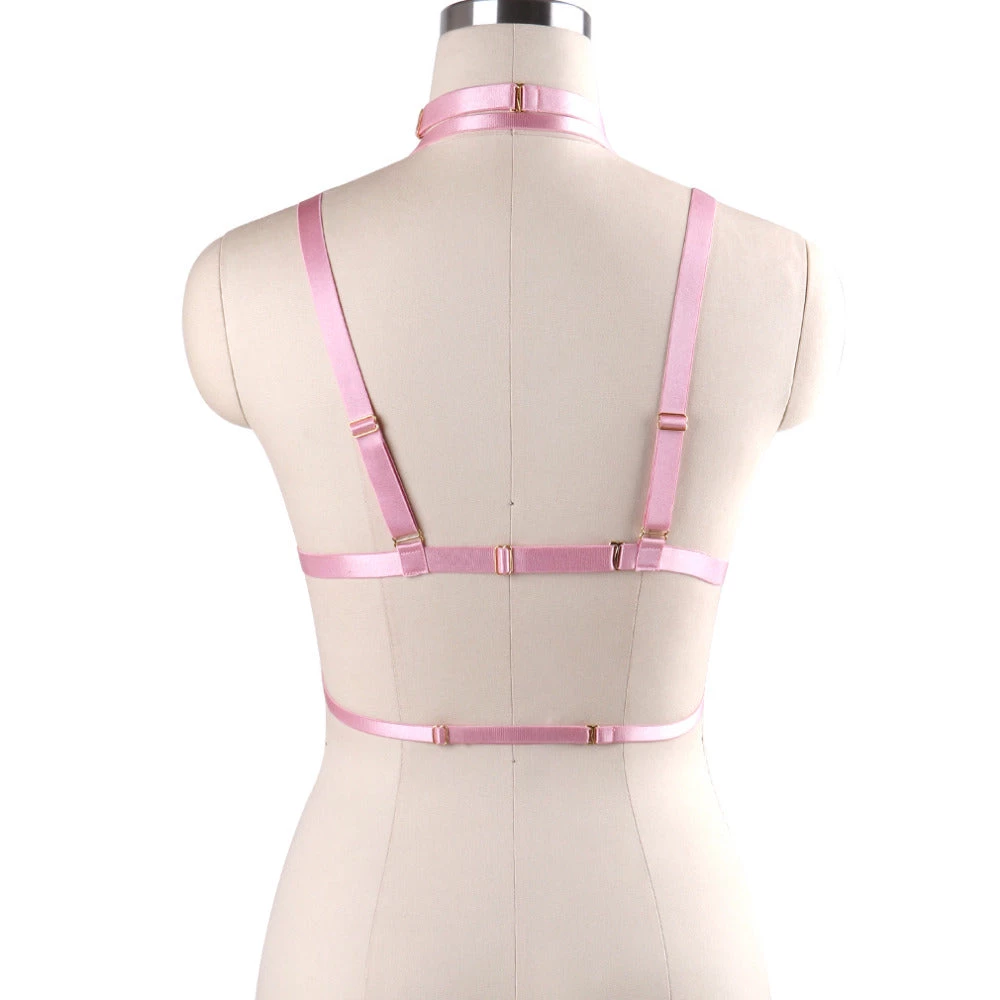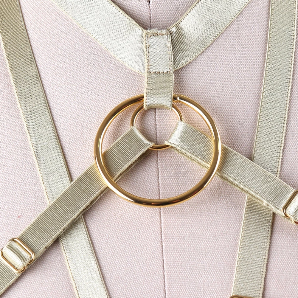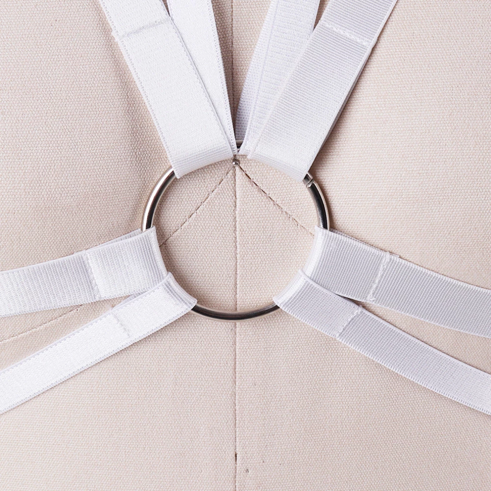 Adjustable chest harness made with spandex. Can be worn under or over clothing.