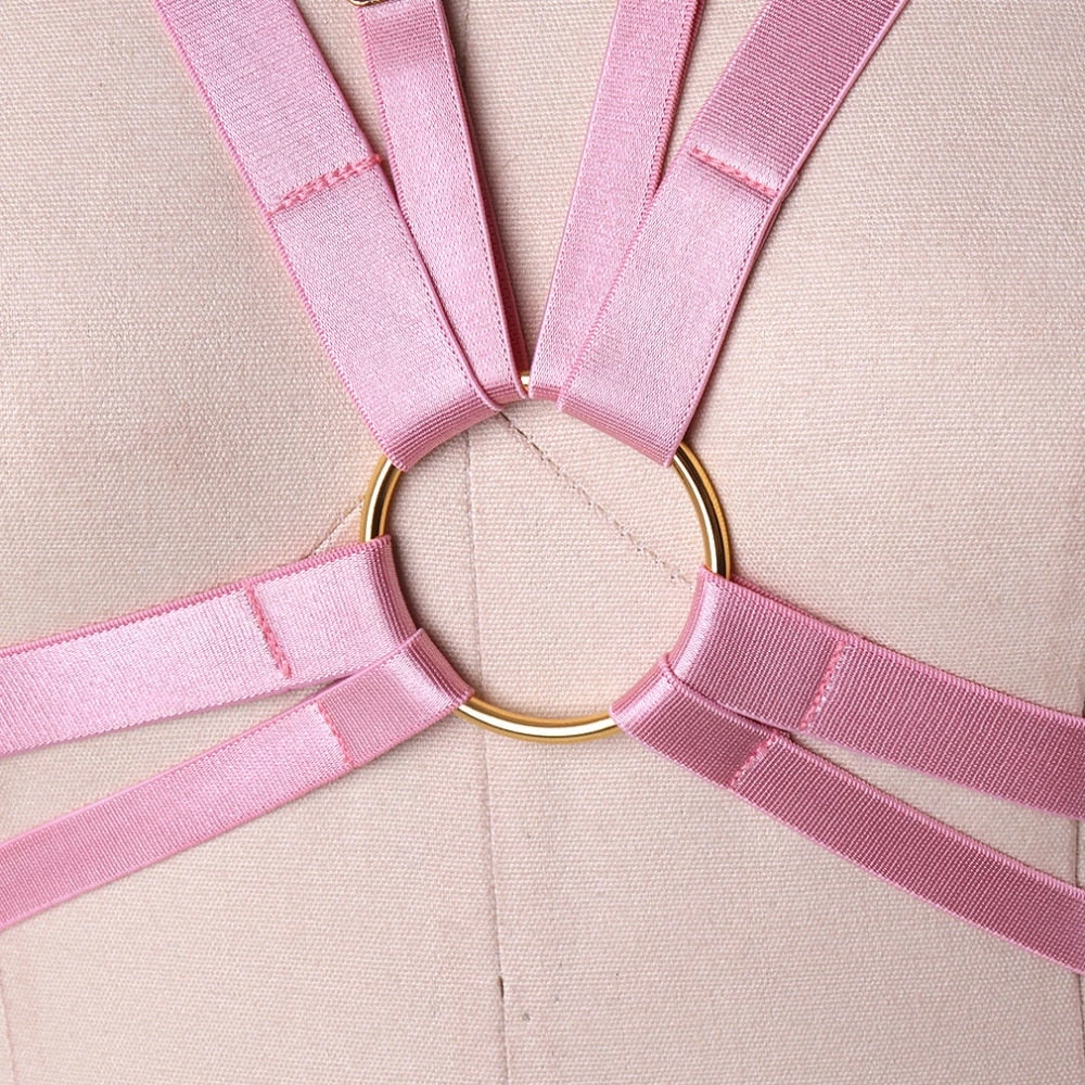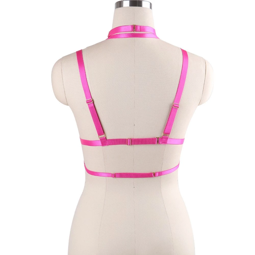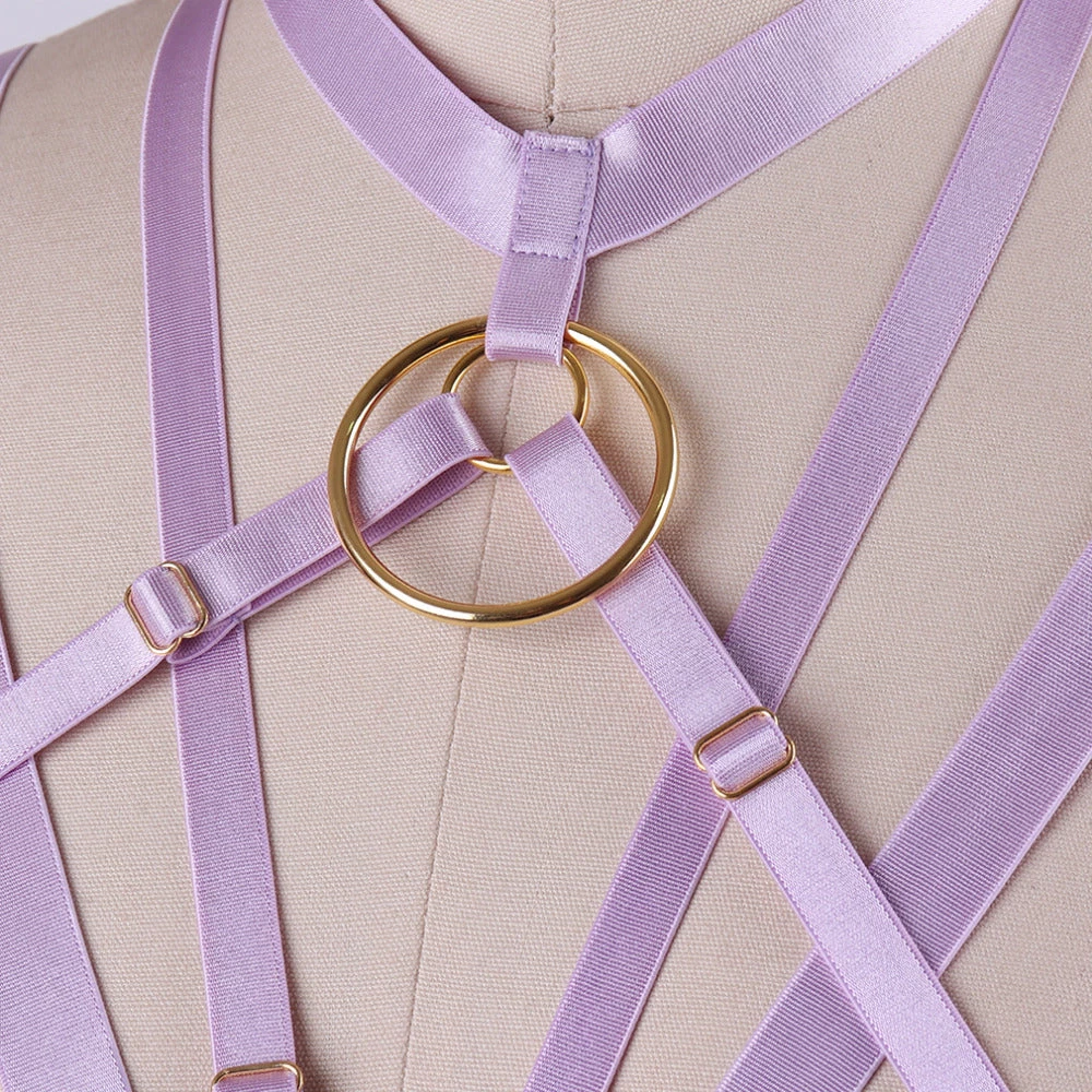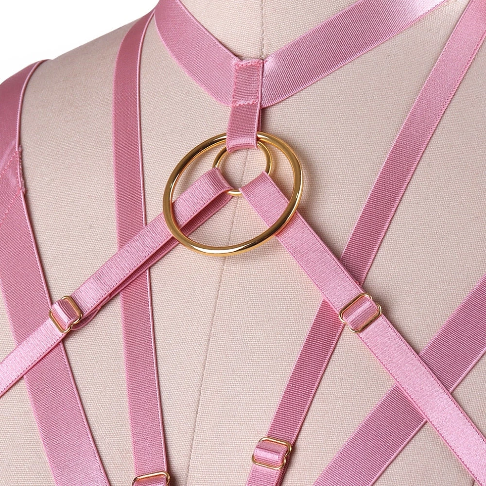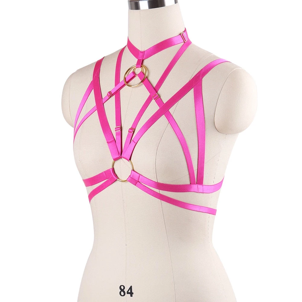 Adjustable chest harness made with spandex. Can be worn under or over clothing.