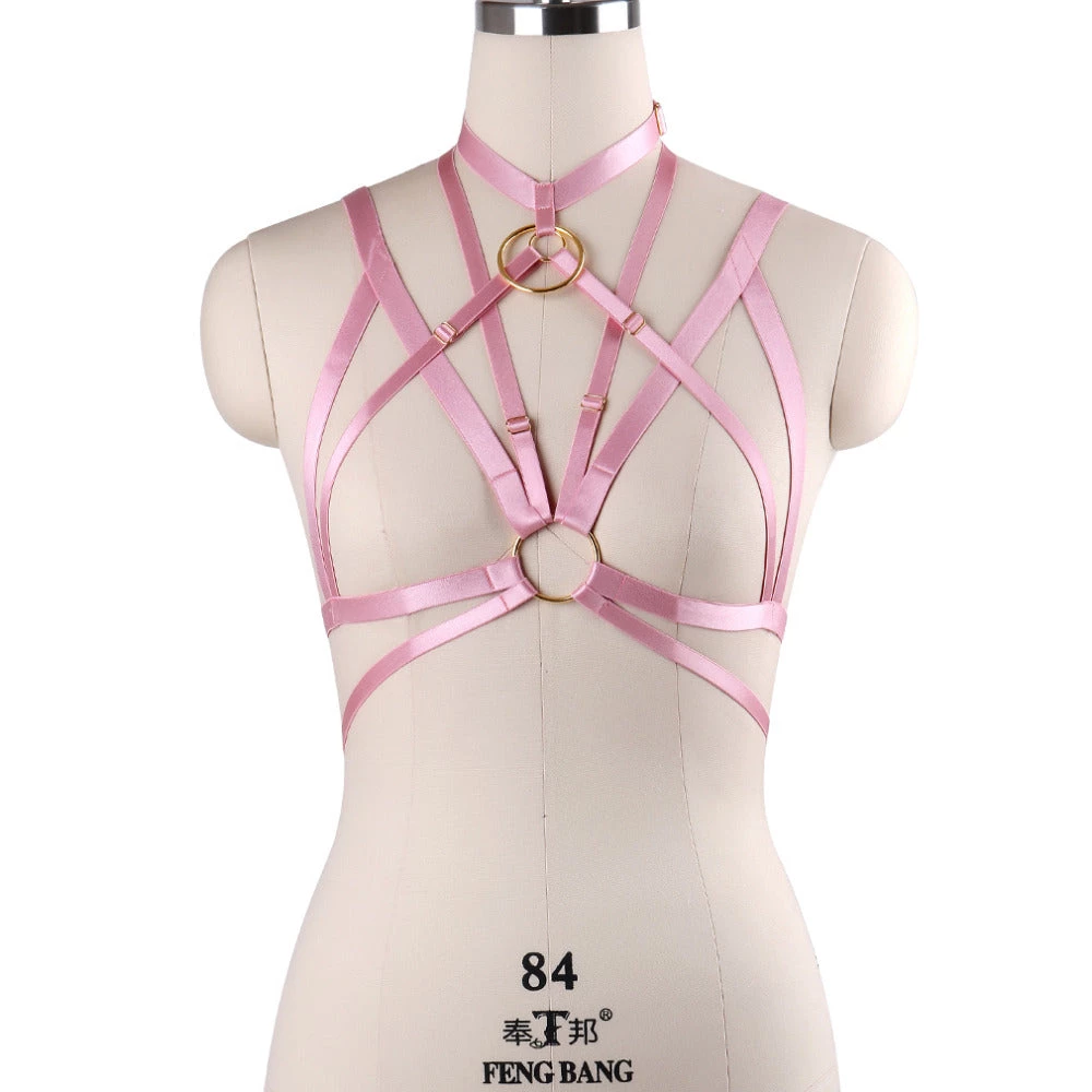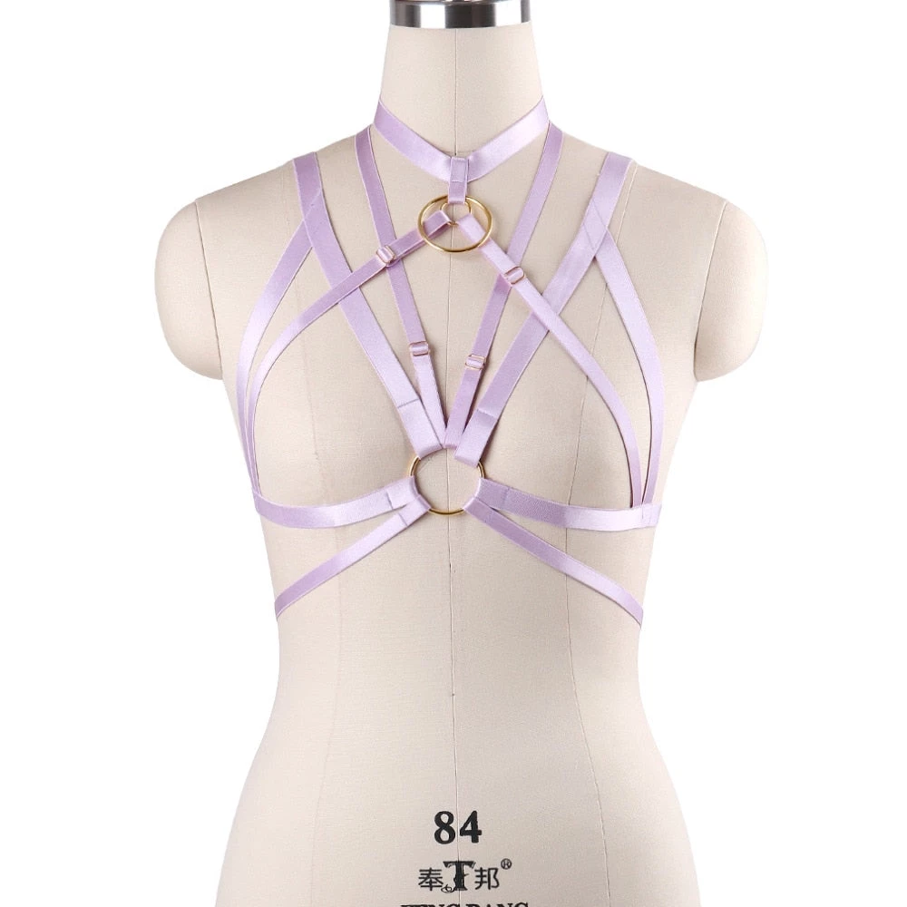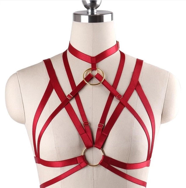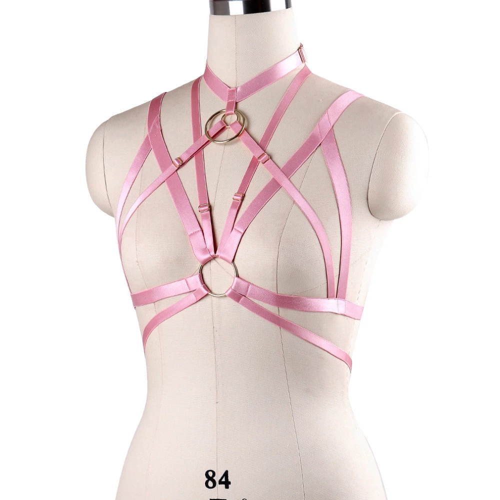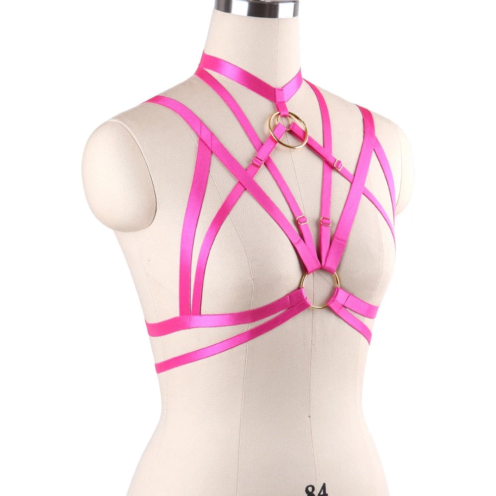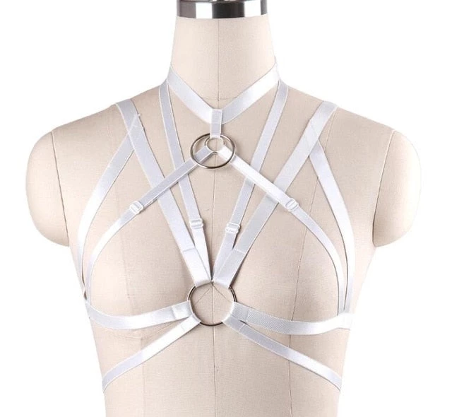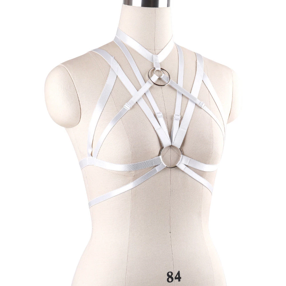 Adjustable chest harness made with spandex. Can be worn under or over clothing.