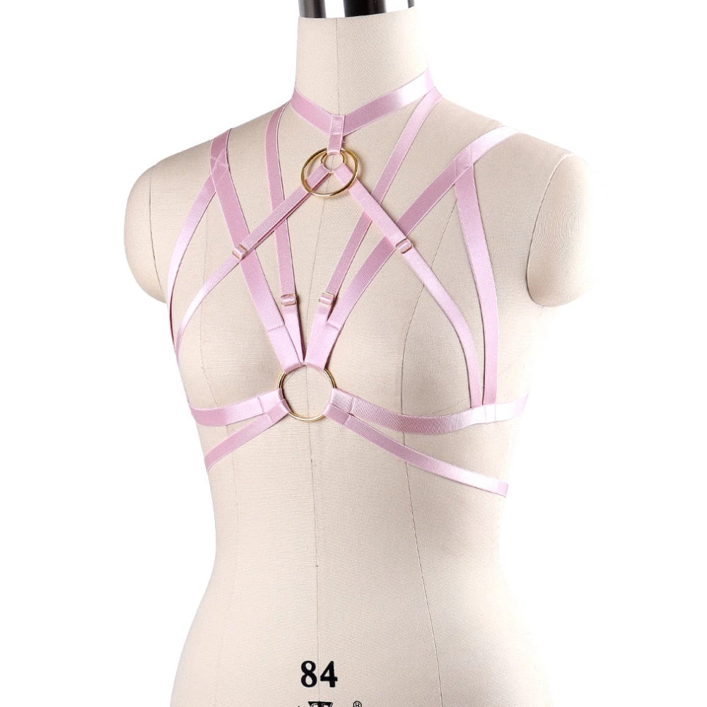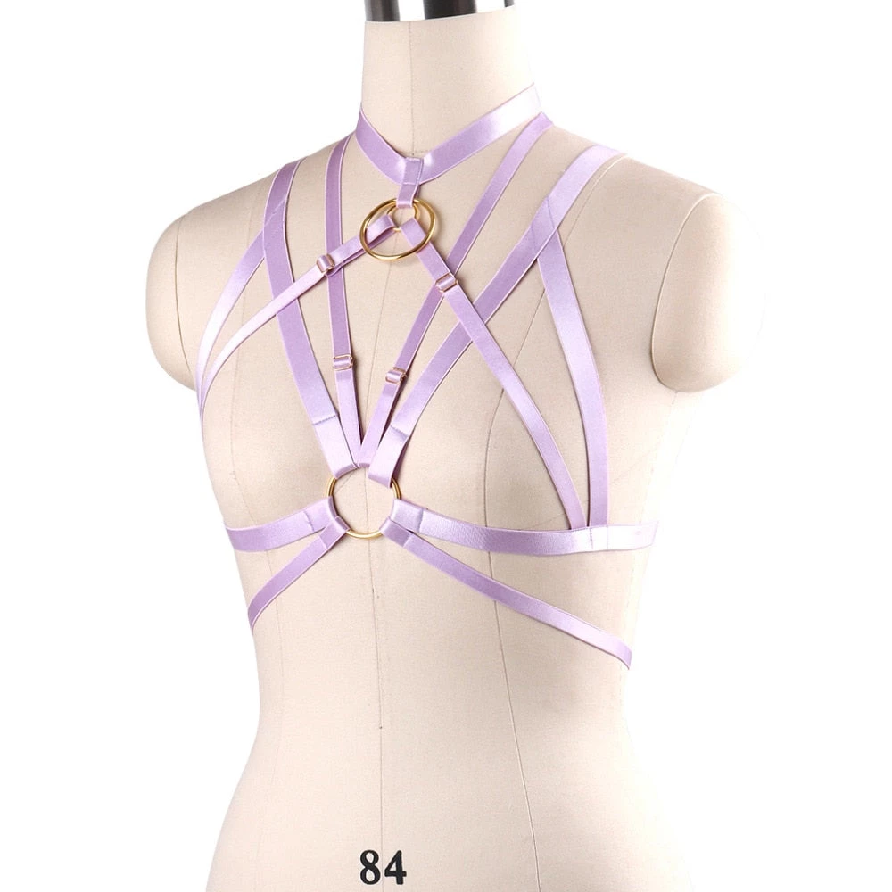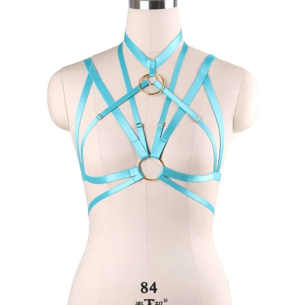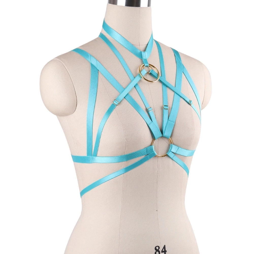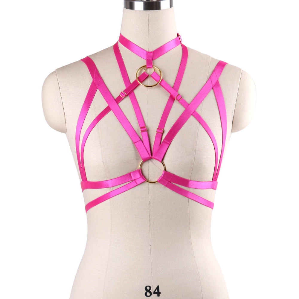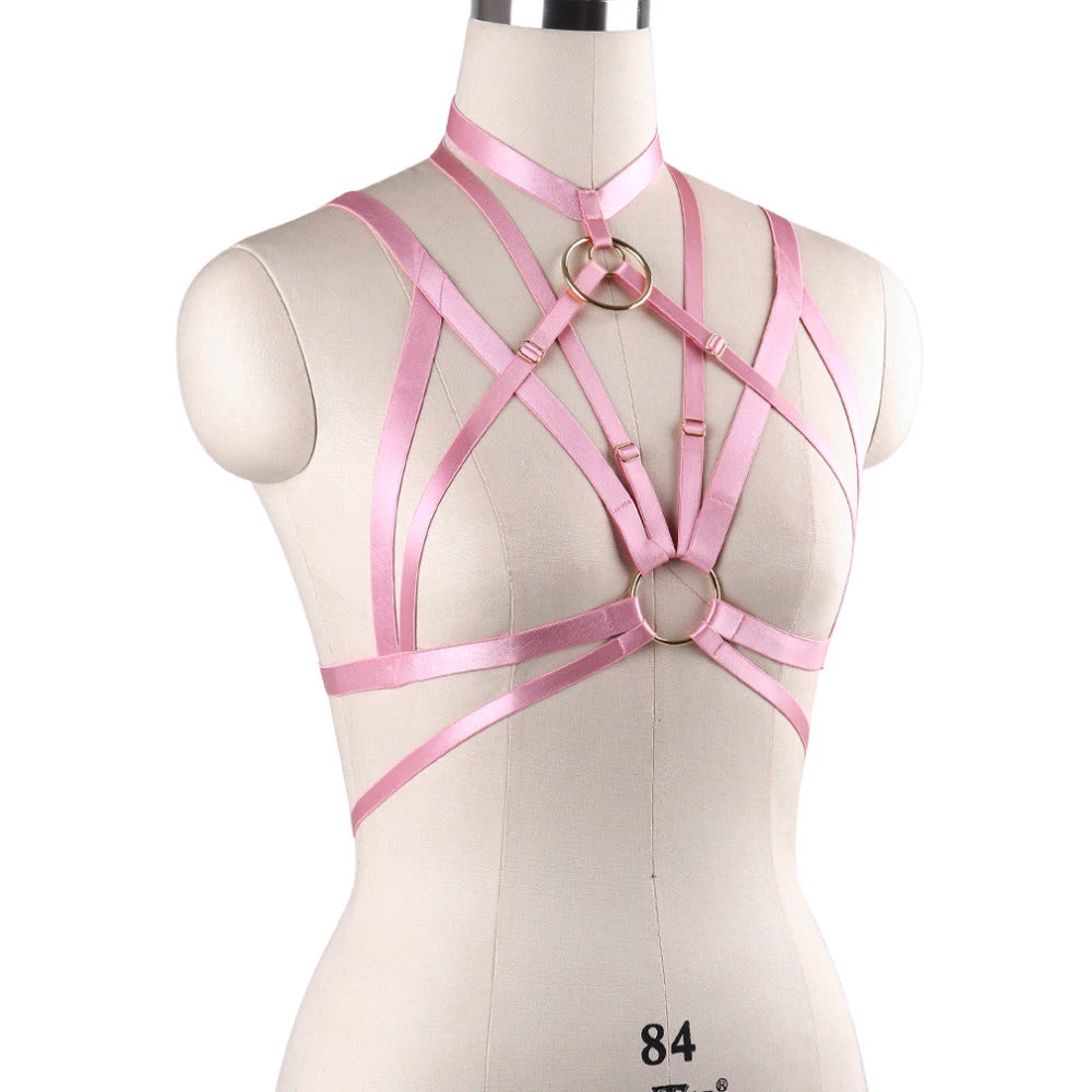 Adjustable chest harness made with spandex. Can be worn under or over clothing.