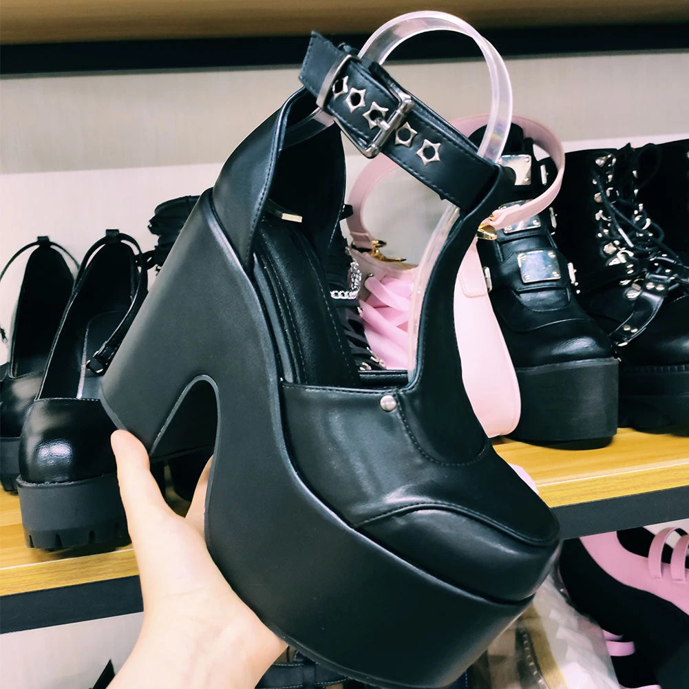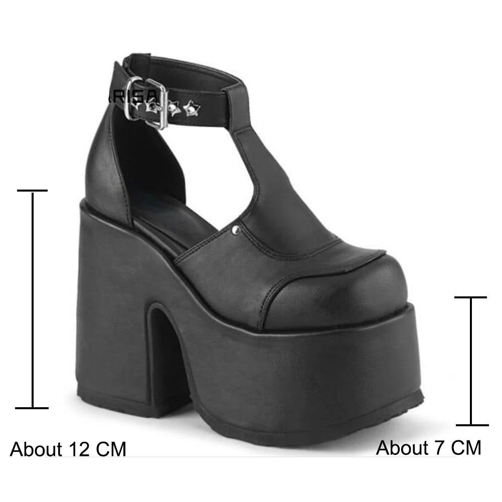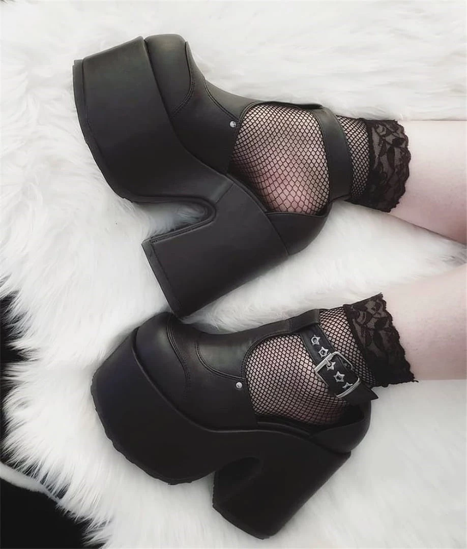 Solid platform shoes with high heel, made from cruelty free pleather and available in 2 styles.