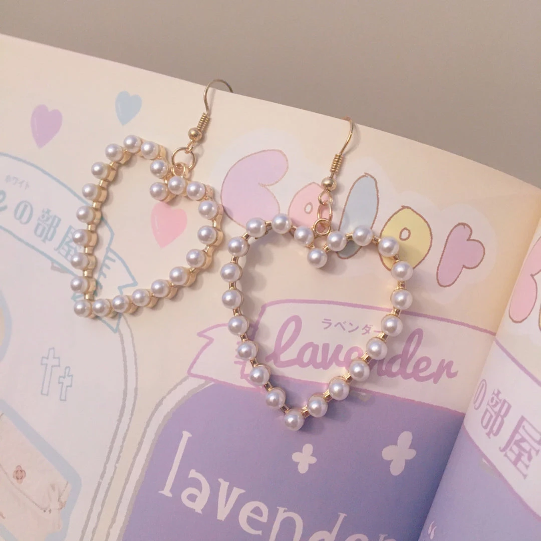 Elegant, large gold heart earrings with pearl details. Classy and cute!