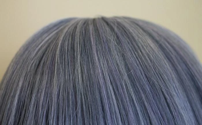 The whole wig is mixed with a variety of silver and grey colours to give it a more realistic look. It is also very full and thick, no need to worry about the wig cap showing through.