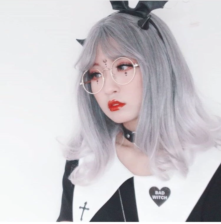 The Antique Moon Wig is perfect for those who love silver hair but dont have the time or money to invest in the dye and upkeep! Its perfect for sweet or mature styles, extremely versatile. It has a slight ombre at the ends, ending in lighter silvery white tips.