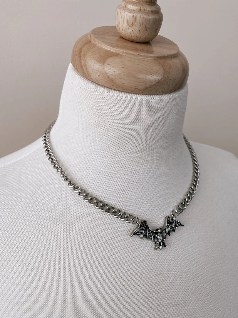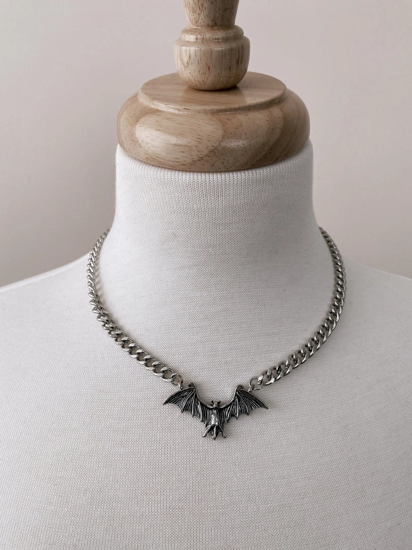 A cute and spooky, bat necklace to give any outfit a goth edge!
