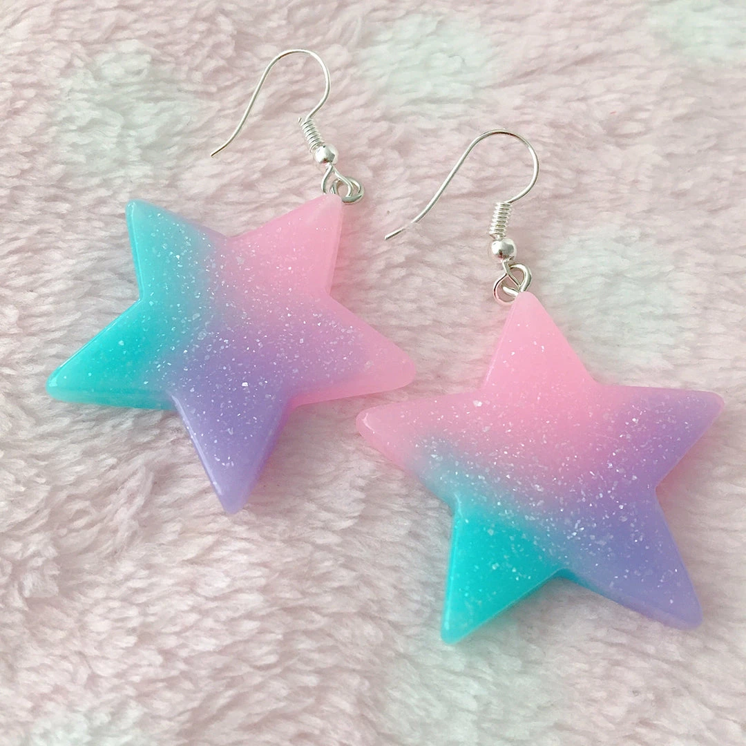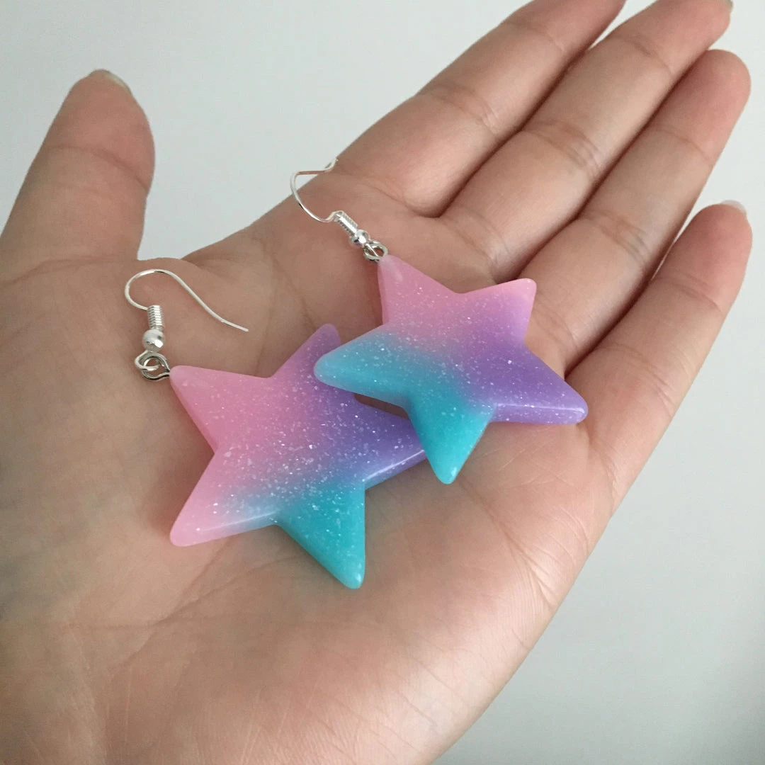 These cute resin earrings will make any outfit glitter and shine with beautiful pastel pink and blue rainbows ^0^