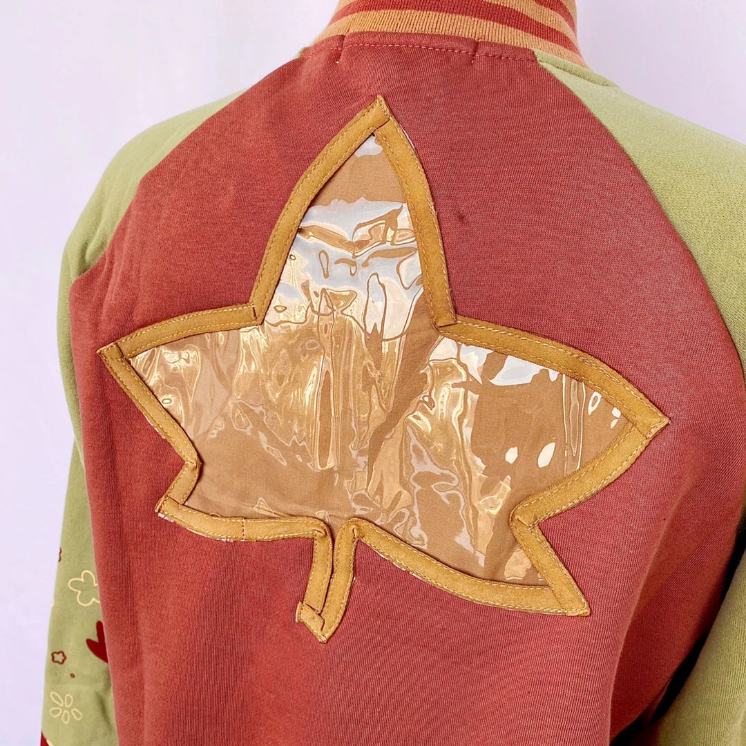 This cottagecore themed Ita Jacket has a chestnut brown base, forest green sleeves and tan/brown trim.