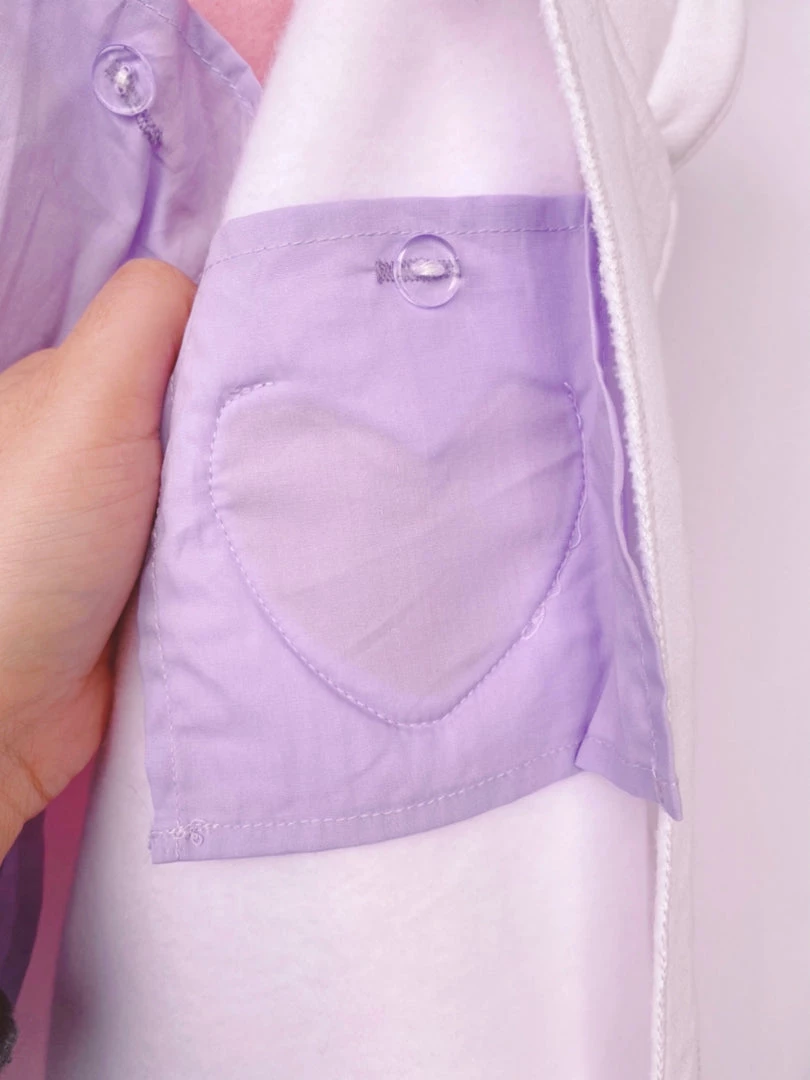 - Heart shaped front pocket with lace trim