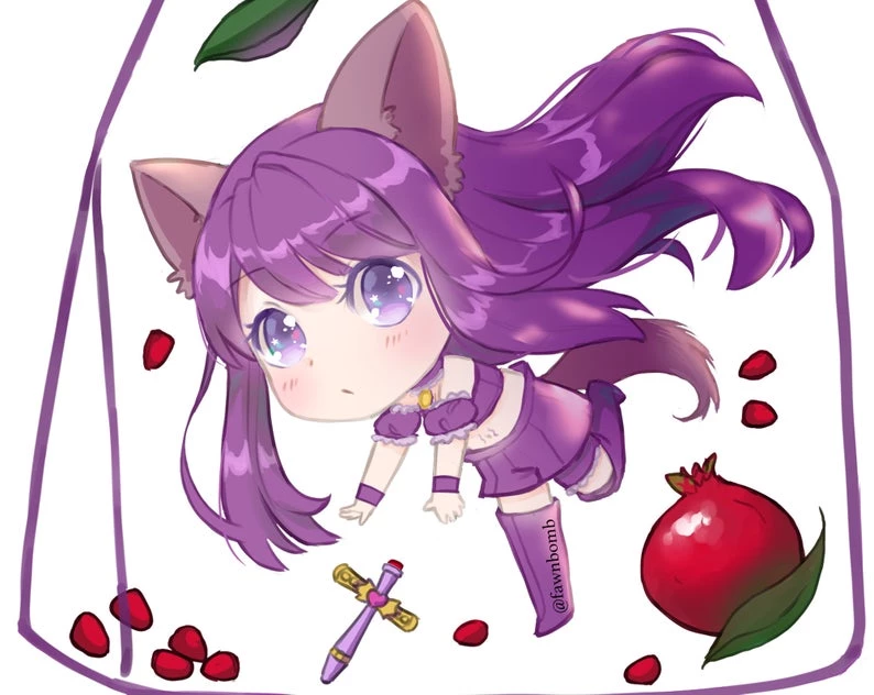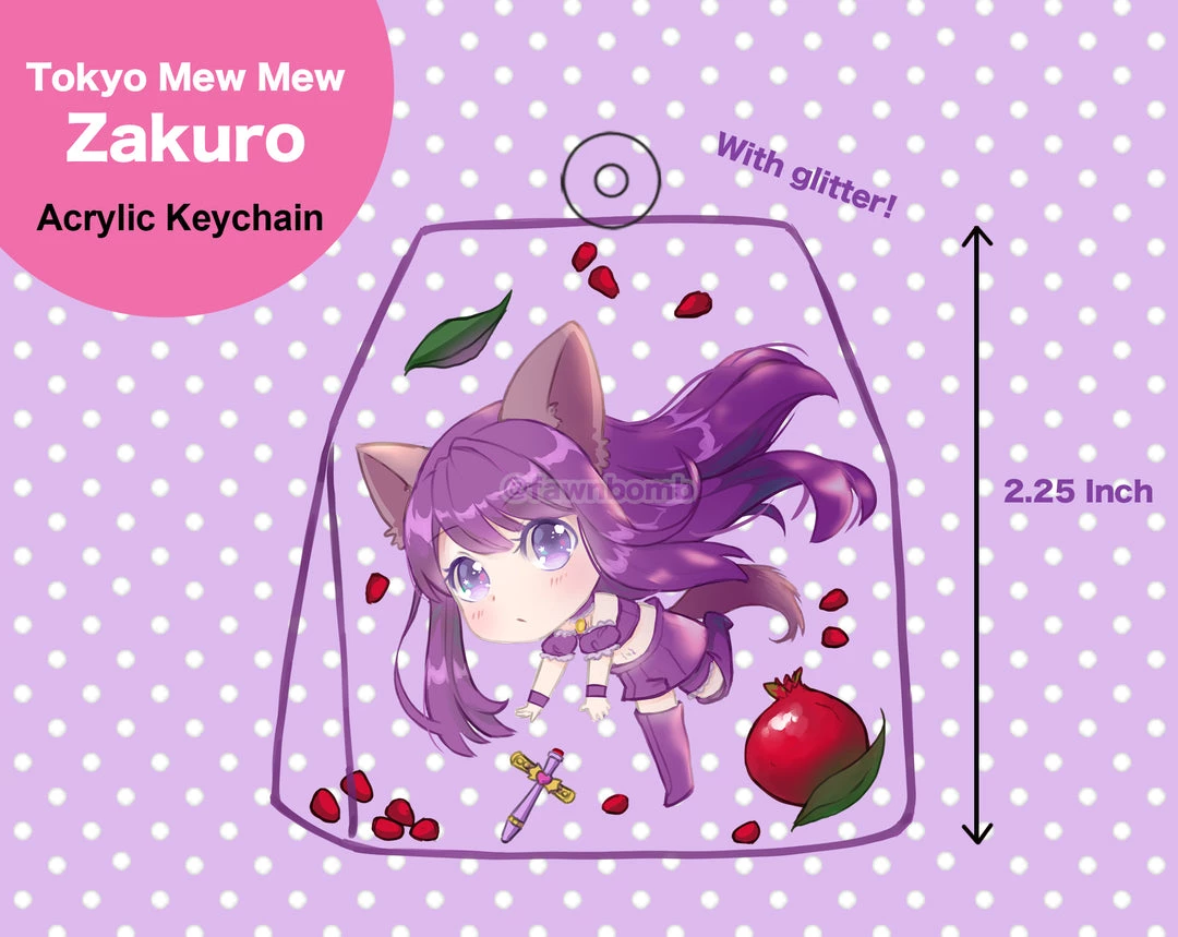 A little Zakuro floating inside a clear pomegranate tea bag! Complete with glitter and a heart keychain ^^