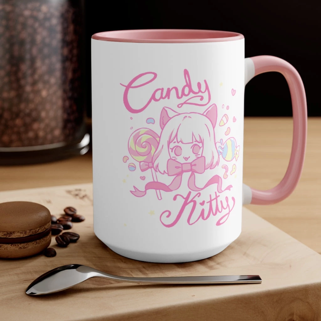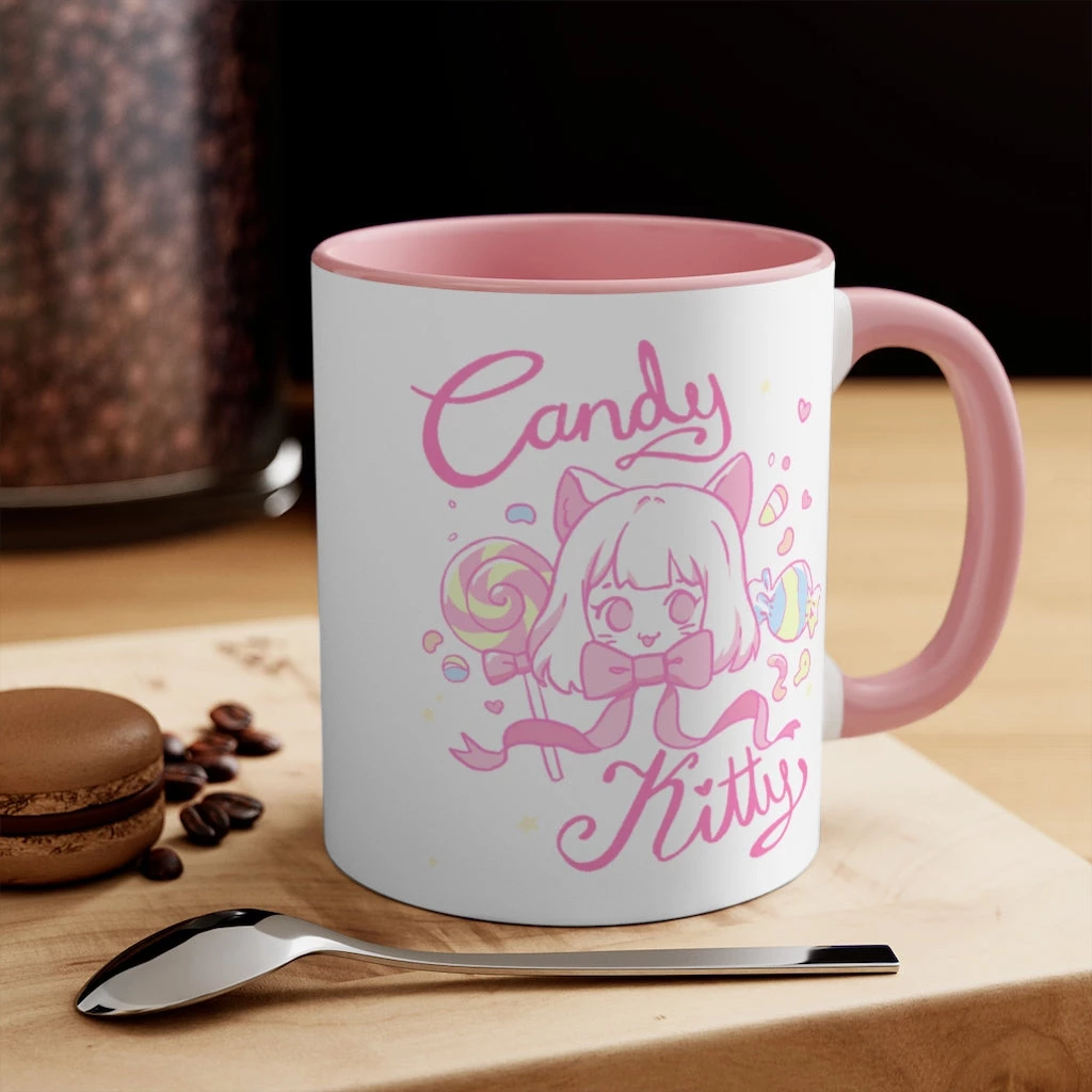 Sip your favourite drink in style with this super cute, pastel mug featuring Mieko the white neko girl!