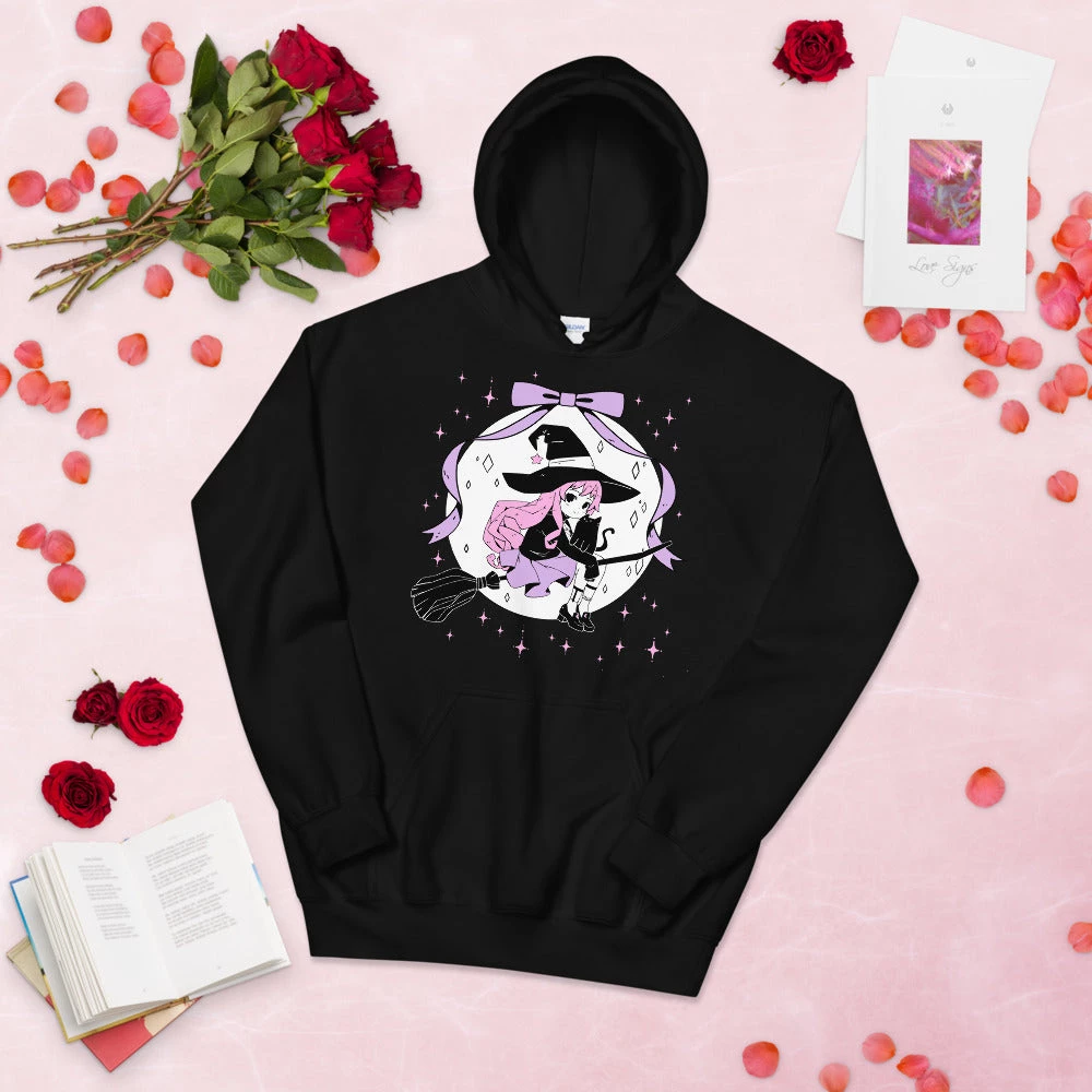 Lilith is a cute little witch that loves giving her cat Fizz head pats and riding her broom in the moonlight! She has a talent for healing potions and sometimes wonders what it would be like to attend a human high school.