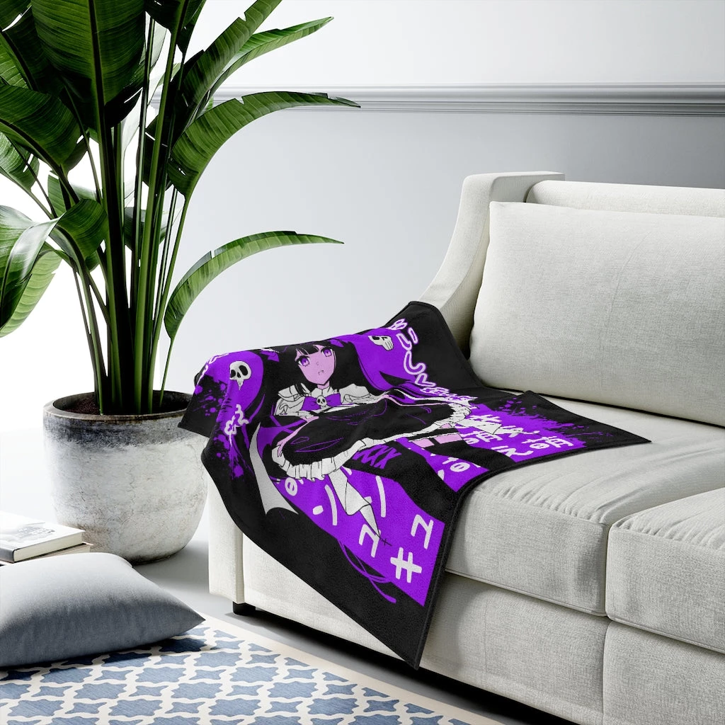 Snuggle up with Nanako in this warm and cozy plush velveteen blanket.