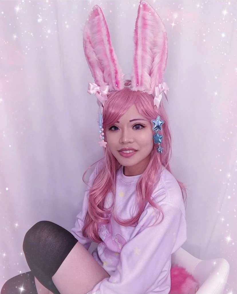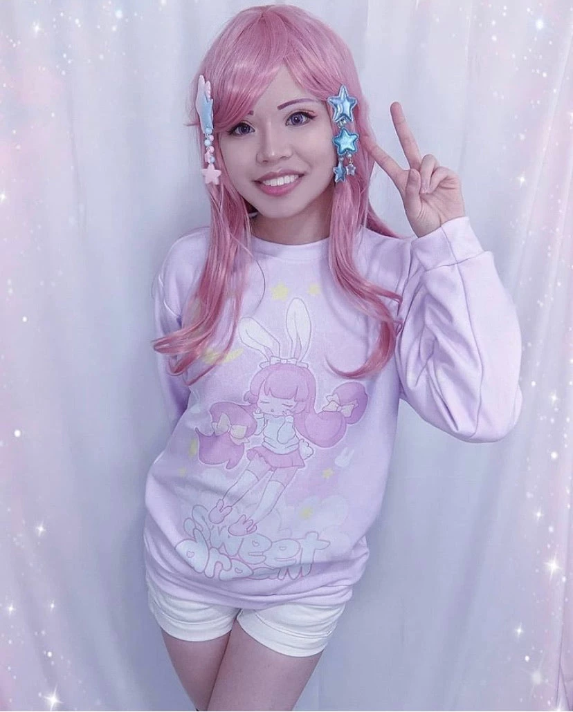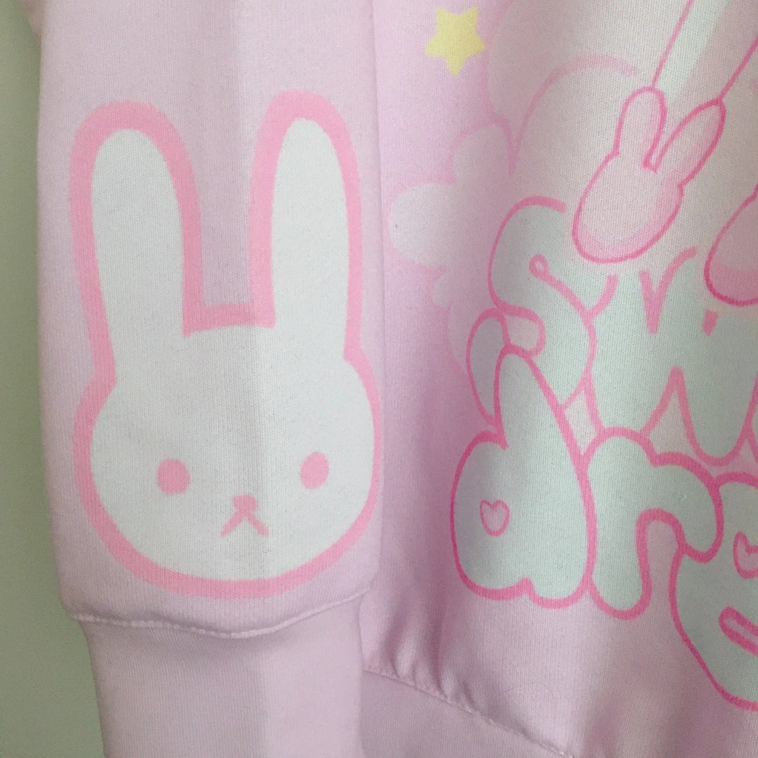 Fall into a cozy slumber with this adorable soft pink sweater featuring a cute bunny girl floating amongst fluffy clouds in the night sky.